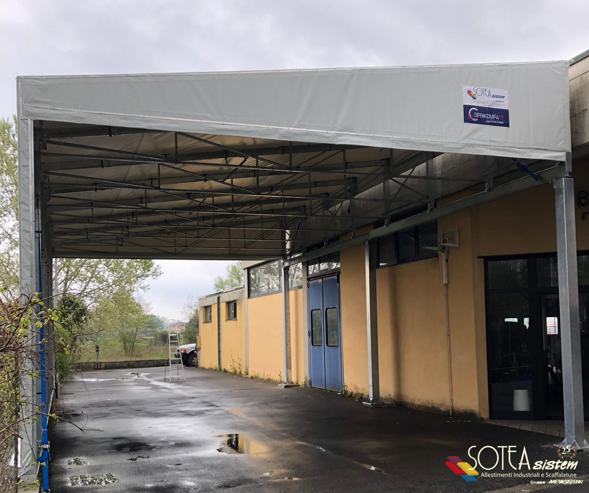 Questa soluzione è particolarmente indicata per aree produttive, logistiche e di stoccaggio che richiedono coperture mobili efficienti, senza rinunciare a robustezza e sicurezza strutturale.