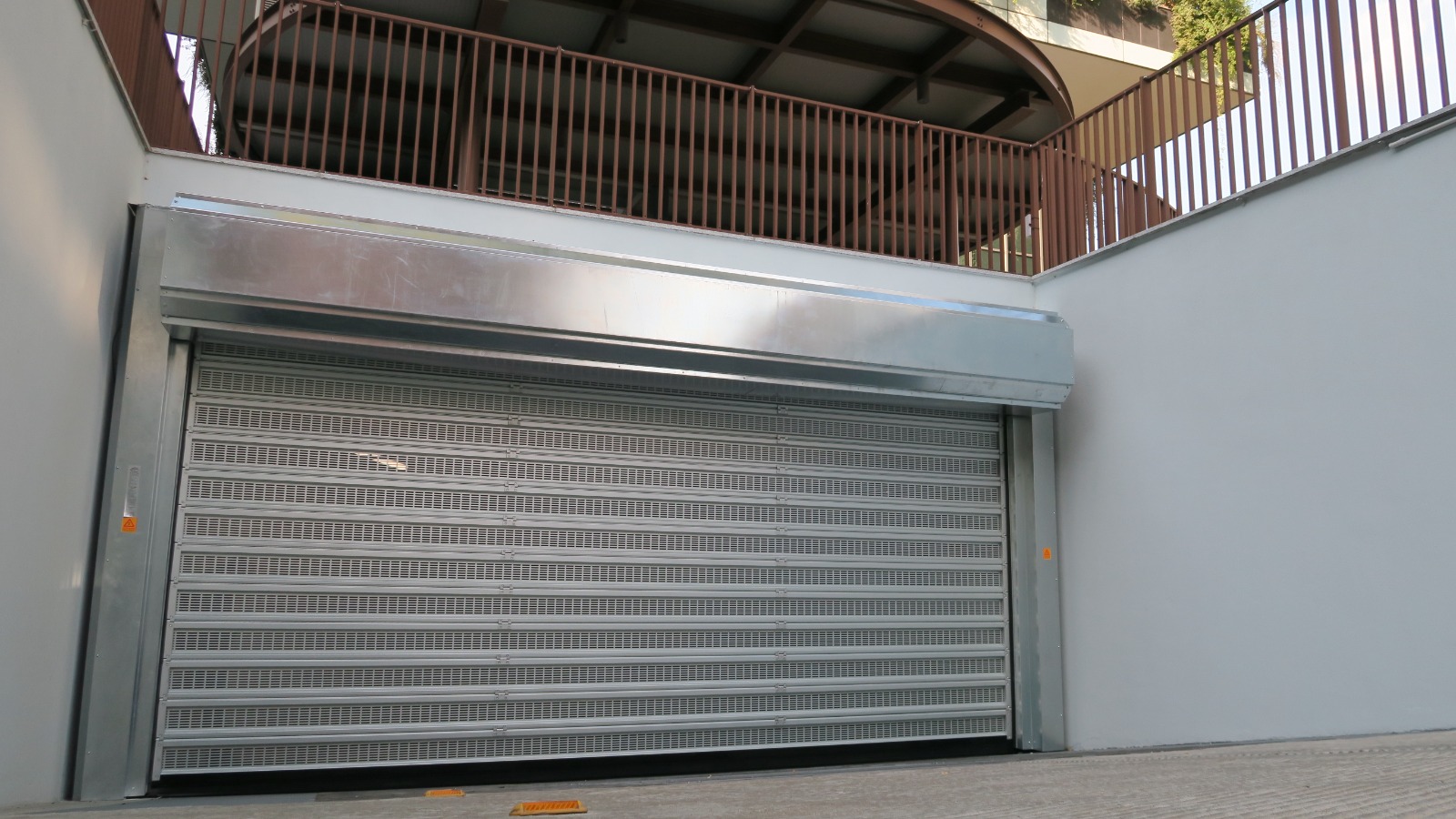 Questa serranda è ideale per applicazioni industriali e parcheggi collettivi dove è richiesta aerazione, sicurezza e rapidità di apertura. La struttura non necessita di fissaggi al soffitto, consentendo installazioni anche in edifici con soffitti non portanti. La motorizzazione trifase a 400V, controllata da inverter ed encoder assoluto, permette aperture fino a 2 m/s, garantendo continuità di servizio anche in uso intensivo.