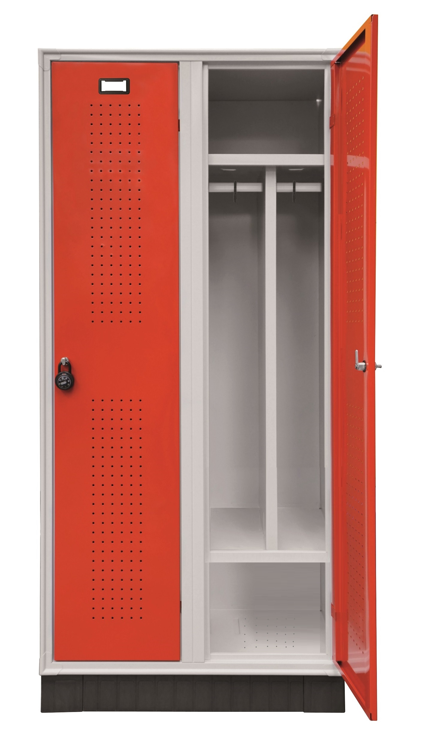 Gli armadietti sono realizzati in lamiera d’acciaio verniciata a polvere o in materiali plastici resistenti agli urti e all’umidità, dotati di chiusure sicure con lucchetto o serratura integrata. Le panche abbinate presentano struttura in acciaio e seduta in legno, laminato o materiale plastico antiscivolo, progettate per sopportare carichi elevati e un uso intenso. Tutti i componenti sono trattati per resistere all’usura, facilitare la pulizia e garantire lunga durata anche in ambienti ad alto traffico come palestre, piscine e spogliatoi aziendali.