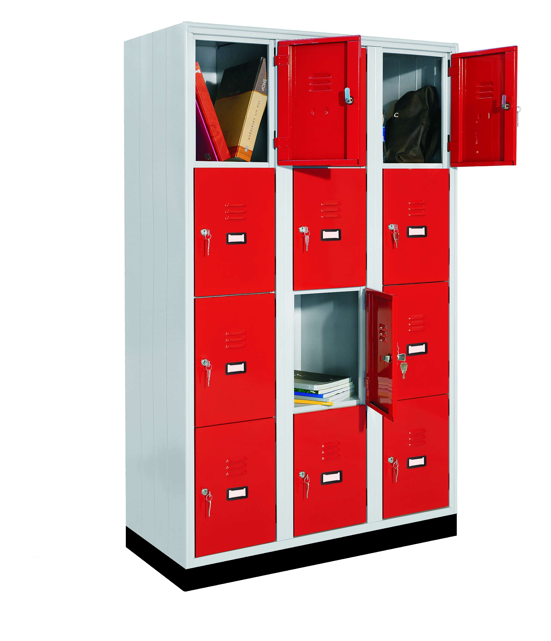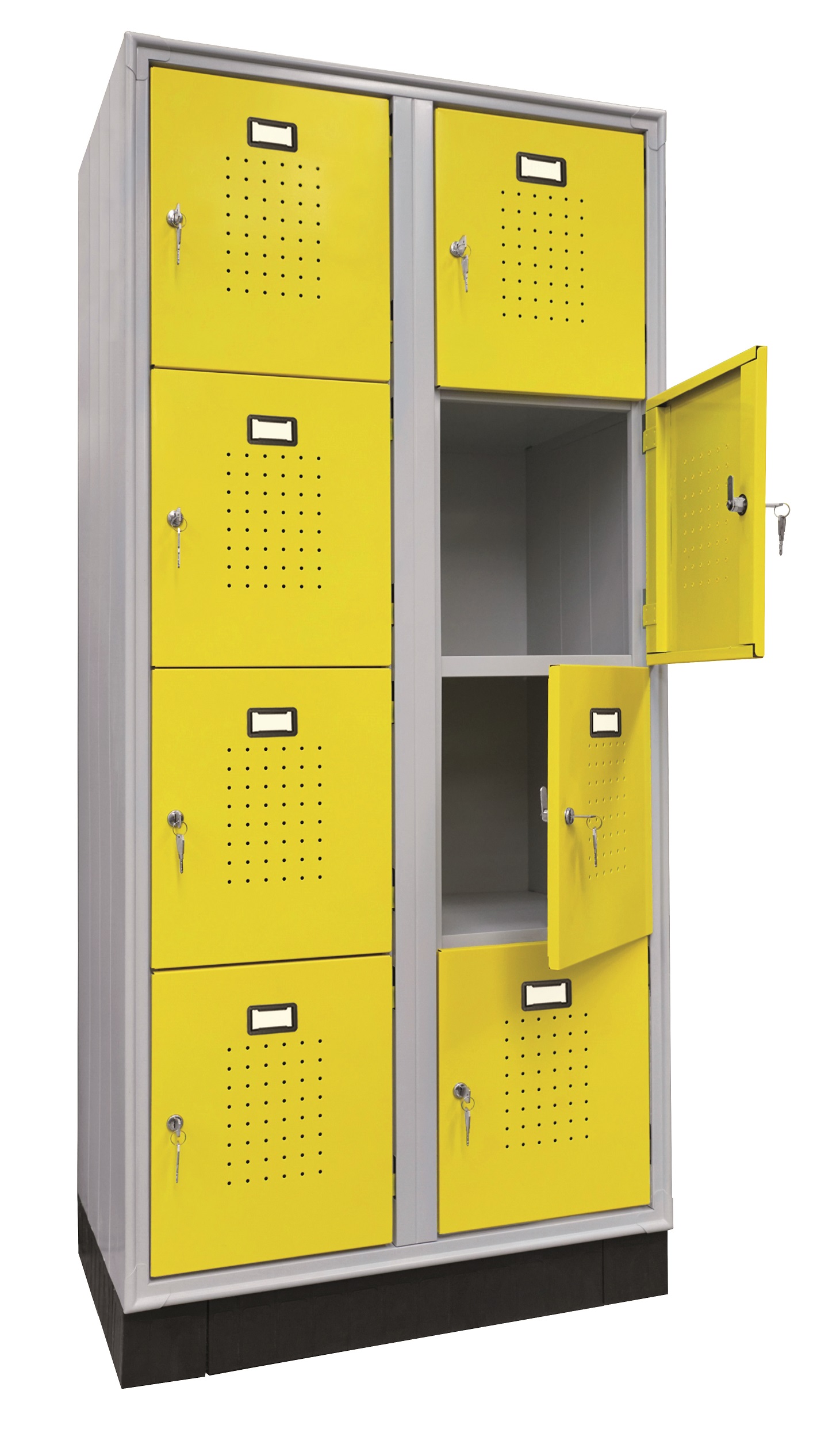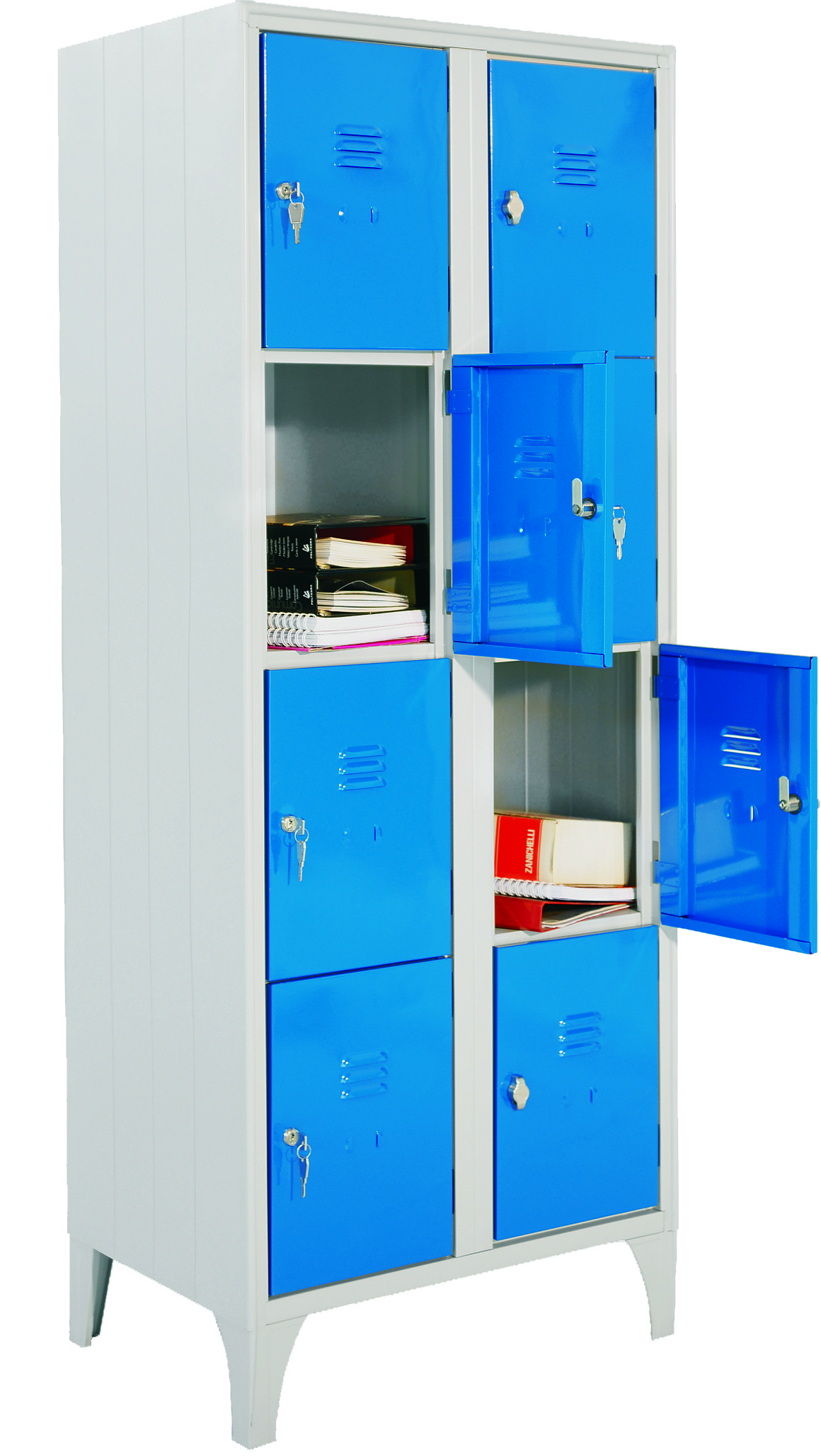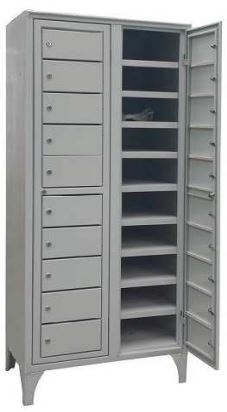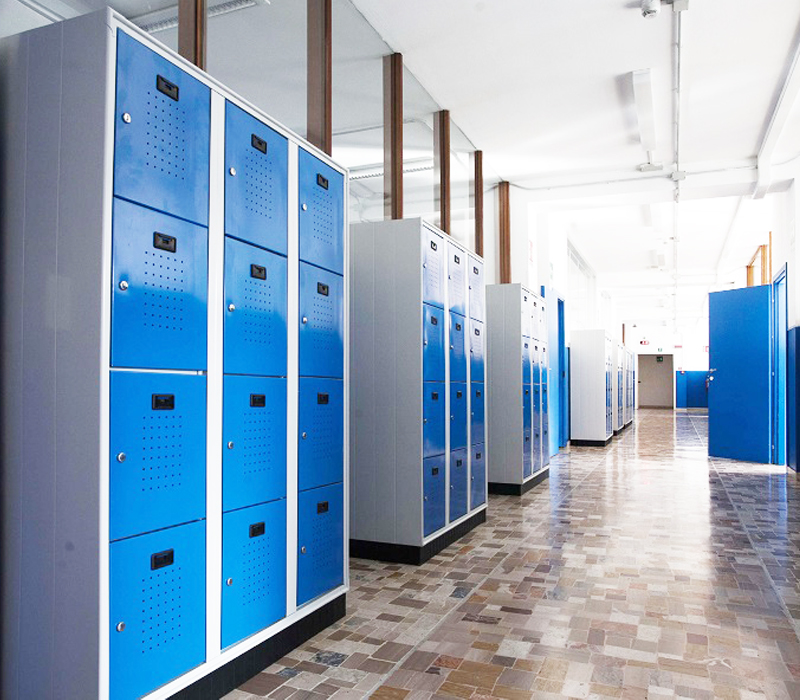 Armadi casellari realizzati in lamiera d’acciaio pressopiegata, con struttura autoportante e vani singoli indipendenti. Ante dotate di sistema di chiusura meccanico o predisposizione per lucchetto.
