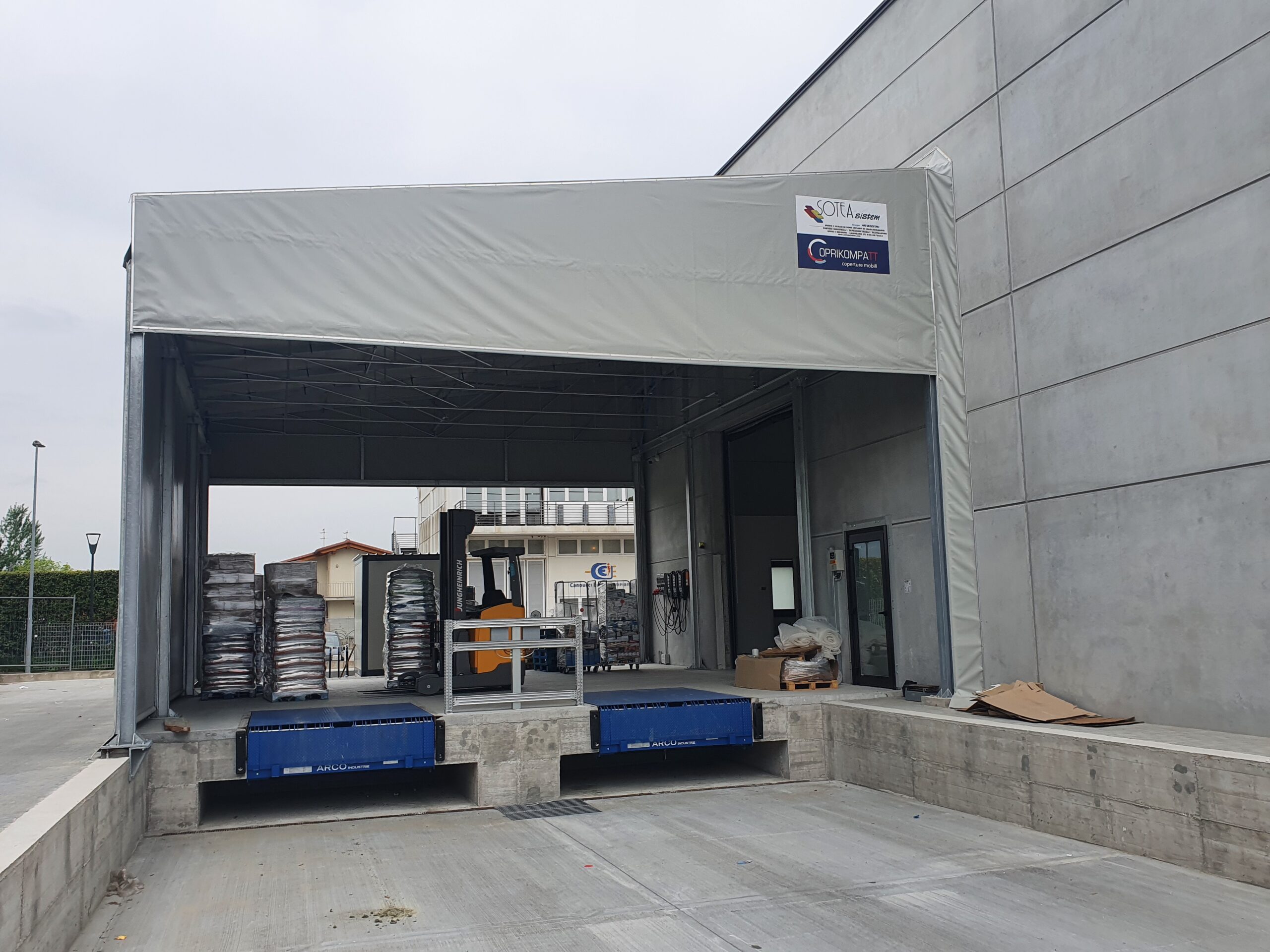 Garantisce operazioni di carico e scarico più rapide e sicure, proteggendo merci, personale e veicoli, e riducendo dispersioni termiche e rischi di danni.