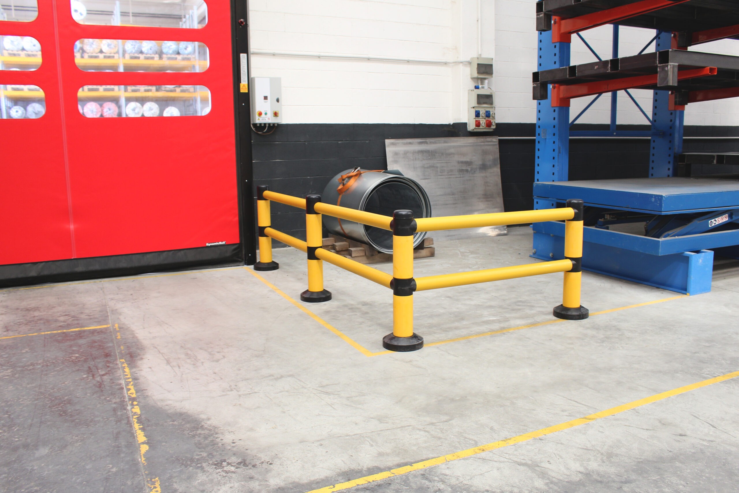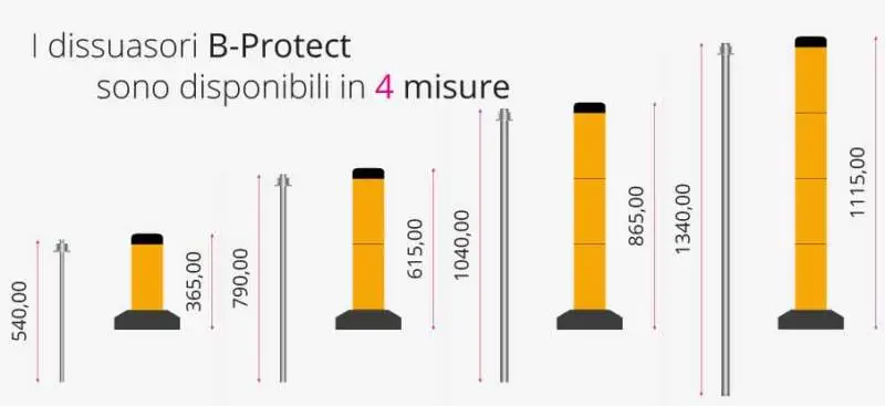 Il fissaggio al terreno avviene tramite colla epossidica bicomponente che assicura stabilità duratura, mentre il colore RAL 1003 giallo ad alta visibilità aumenta la sicurezza e la percezione visiva in ogni area operativa. La modularità consente di scegliere diverse altezze e diametri in base alle esigenze, rendendo B-Protect® adatto a ogni contesto industriale, logistico o pubblico.