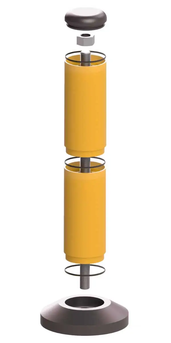 Il dissuasore B-Protect® è realizzato con un guscio in polietilene ad alta densità (HDPE) ad elevata resistenza chimica e agli agenti atmosferici, totalmente non tossico e riciclabile (codice 2). All’interno, una vite in acciaio ad alta resistenza meccanica 8.8 da 30 mm di diametro garantisce robustezza e stabilità, mentre il fissaggio al terreno tramite colla epossidica bicomponente assicura un’installazione sicura e duratura. Il design flessibile permette di assorbire e dissipare gli urti, riducendo al minimo i danni a veicoli e strutture. Il colore giallo RAL 1003 assicura alta visibilità anche in condizioni di scarsa illuminazione. La modularità del prodotto consente di adattarlo facilmente alle diverse esigenze di protezione industriale.