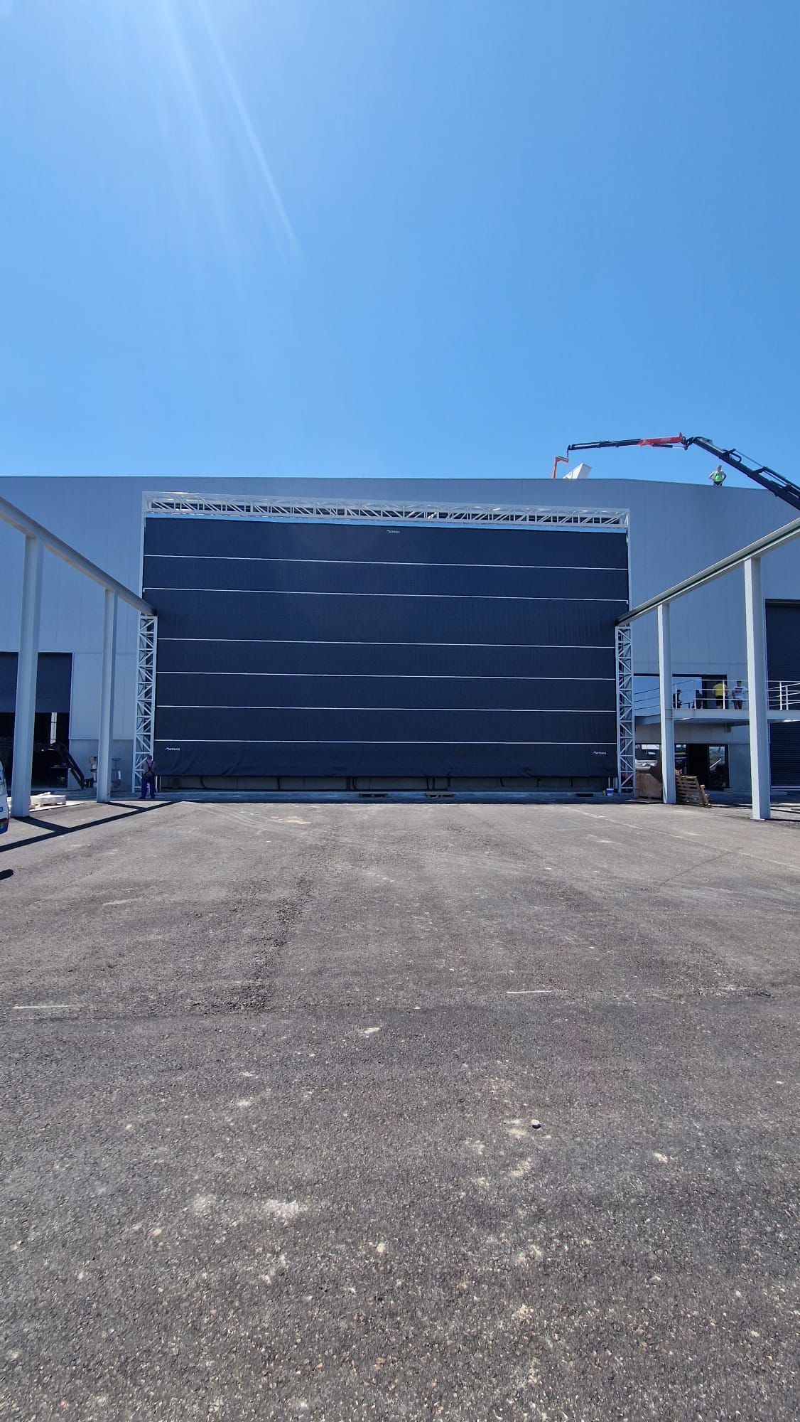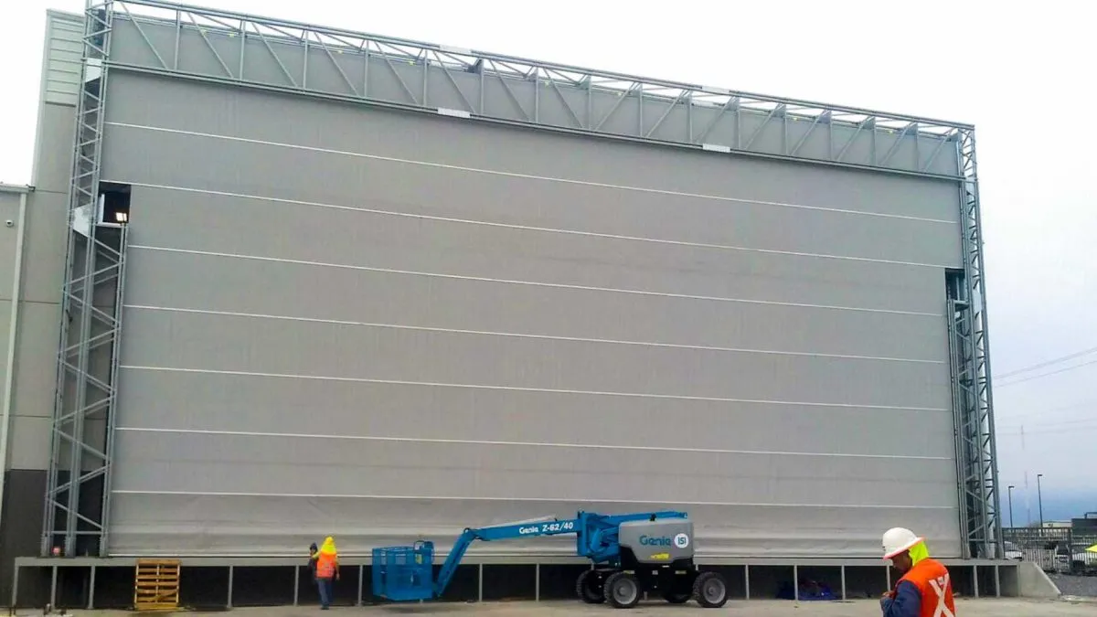 Permette la chiusura efficace di grandi aperture con passaggio gru, mantenendo protezione e continuità operativa negli ambienti industriali.