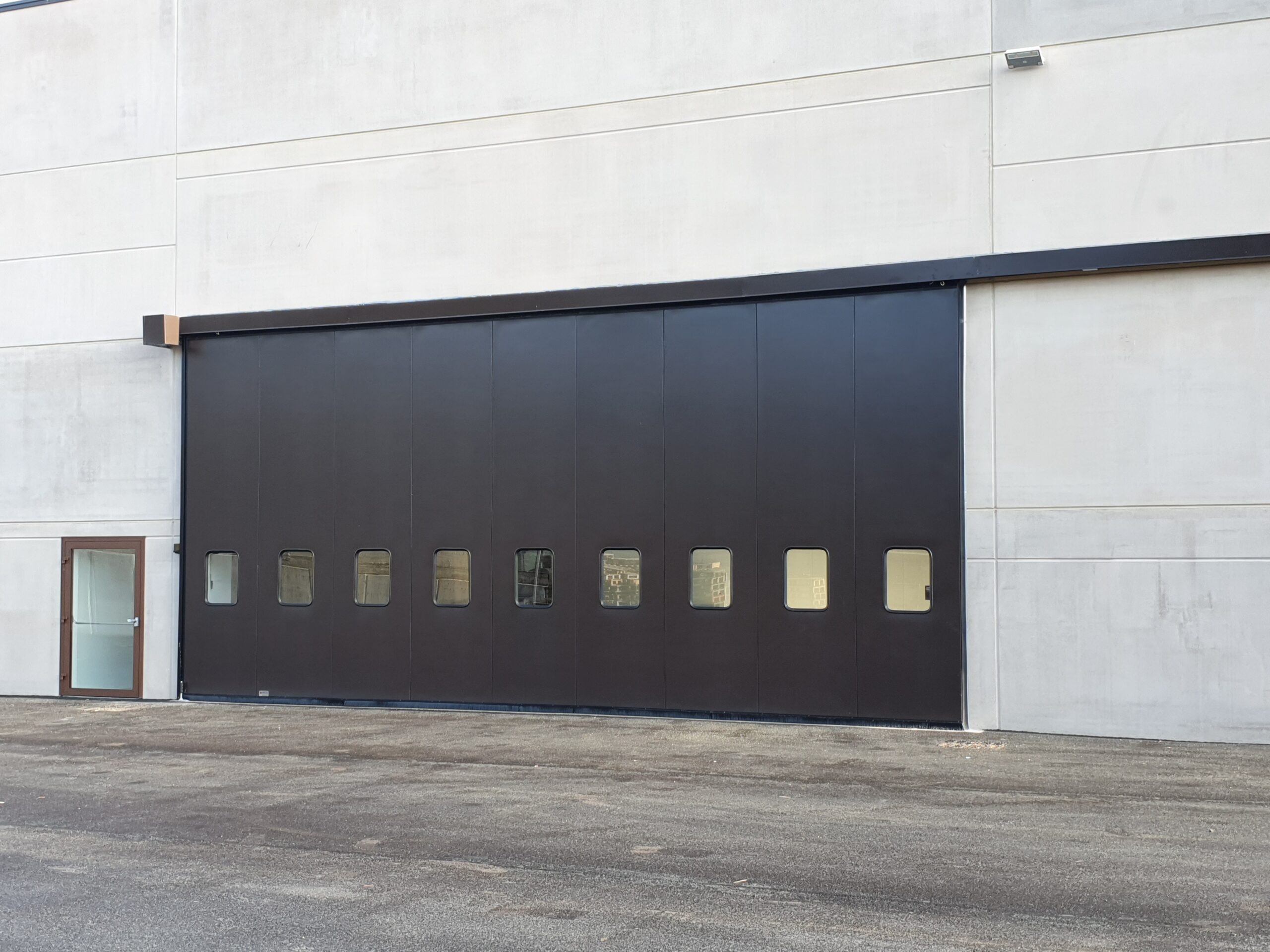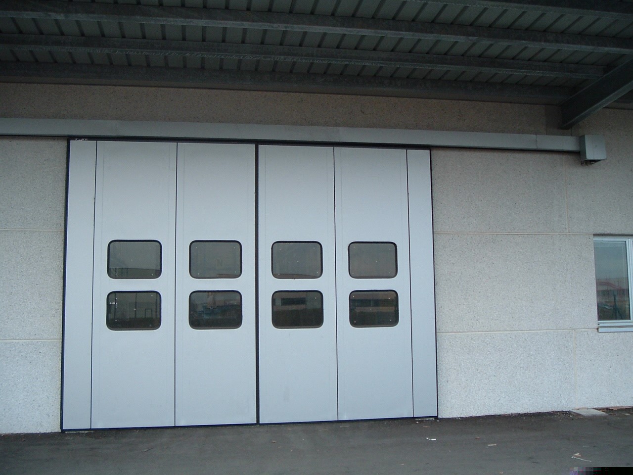 Le ante coibentate da 52 mm offrono ottimo isolamento termico e acustico, mentre i carrelli superiori e le guarnizioni assicurano chiusura perfetta, sicurezza e funzionalità costante.
