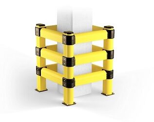 Realizzate in materiali ad alta resistenza agli urti, le protezioni sono modulari e facilmente installabili su pavimenti e scaffalature.
